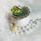 L’ensemble des perles donnent une véritable couleur à ce pendentif où la dentelle Vert Emeraude colore délicatement l’anneau avec d’autres nuances de : Vert Citron, Pastel Jaune, Olivine Opaque, Blanc, Doré, Crystal, Jet Ab2x et Péridot