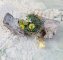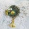 L’ensemble des perles donnent une véritable couleur à ce pendentif où la dentelle Vert Emeraude colore délicatement l’anneau avec d’autres nuances de : Vert Citron, Pastel Jaune, Olivine Opaque, Blanc, Doré, Crystal, Jet Ab2x et Péridot.