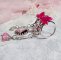 J’ai appliqué des cabochons ronds dans les nuances de Crystal AB et Fuchsia Cristal Swarovski à laquelle s’ajoute des pendants avec une clochette Rose Pink verre, une breloque charme en forme de fleur, un pendentif ovale verre représentant un visage de femme aux cheveux longs bouclés portant un bouquet de roses, des intercalaires gouttes métal, une toupie Opaque Rose Argenté et coupelles filigranées